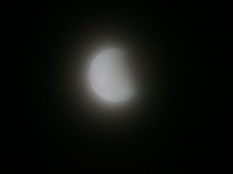 月食の最終段階でやっとぼやっと見えたので撮影、でも画角が小さいのでどこに月があるのかを見つけるのが大変。 |