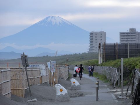 ![]() 日没後の富士山 日没までは雲で全く見えなかったが雲が消えて姿が見えるように、雪もうっすら見えている。 今日の公園も海岸も結構な人出、緊急事態宣言の効果はどこへ、という状態。 |