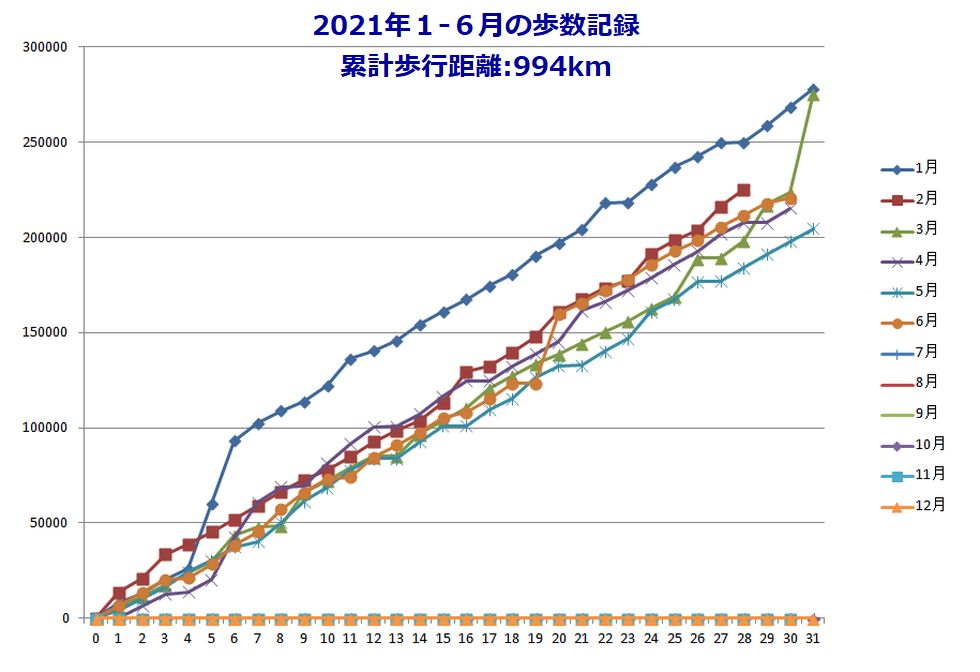 2021年1月から6月の歩行記録