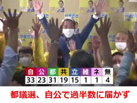コロナ対応での失策、ワクチン接種を進めるも供給不足、オリンピックでの重なる失策など自民党には冷たい風が吹き荒れて厳しい結果に、都民ファーストの会には好都合だった。 秋の衆院選は自民党にとって想定外に厳しい状況、コロナでオリンピック中断となれば大敗は必至。 |