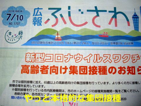 ミニコミ誌には11日からの本格的な集団接種を実施と紹介されていたが、10日発行の市の広報誌では配布が間に合わないせいか最初3回分の接種情報が欠落したまま。 |