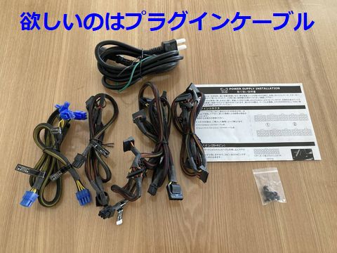 欲しかったのはプラグインのケーブル類、現用の電源にはメイン以外のプラグインケーブルが一切付いていなかったが、LENOVOのマザーボードにはHDD等への電源供給はマザーからなので困らなかった。今回はビデオカード拡張用にと入手。 |