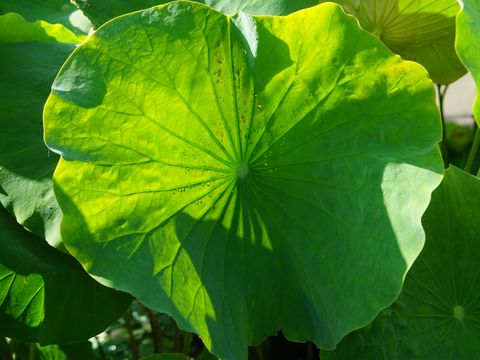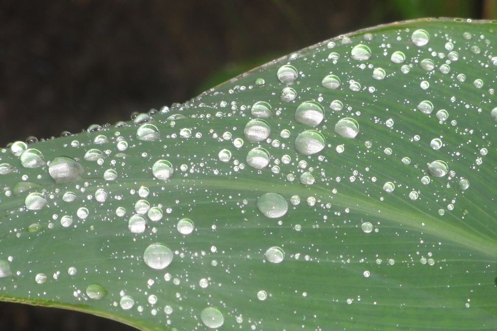 蓮の葉っぱのシャワーで虹も見られた。 |