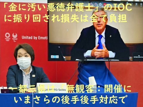 もはや国民の健康・安全よりオリンピック開催の方が重要だと言っているとしか思えない優柔不断な菅政権。遅すぎの「観客なし」は立派な決断だと国民に感謝されるとまだ思っている?チケット再抽選の結果の発表もままならない(再々抽選?の可能性)なか時間は過ぎてゆく。 |