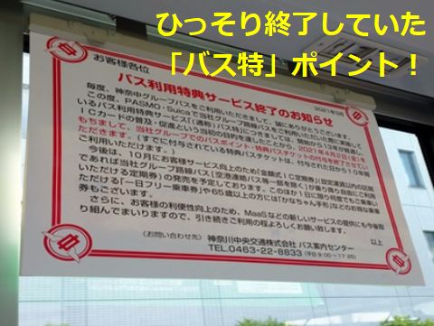 最近は下車時にポイントが付かないな、と思っていたら3月末でひっそり終了していたらしい。まだ一部のバス会社だけは継続中のようだが。元々回数券をなくすので同等の割引をと言っていたような気もするが。 |