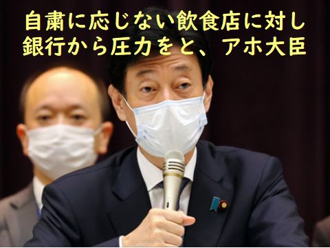 大規模テストでは実現できそうもない記述式やバラバラの英語検定を取り込むなど当初から疑問だらけだった共通テストの新プラン、やっと気が付くバカらしさ。 こちらは銀行から居酒屋などへ優越的立場を利用して恫喝するに近いアホな再生大臣の言動、1年以上もこんな低レベルな大臣がコロナ対策担当とは。 |