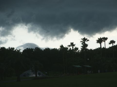 夕方、海岸へ散歩に行ったが不穏な空から雨粒が落ちてきて慌てて帰宅。日没後には雨が降り始めたが東京ほどの酷い雨ではなかった。 |