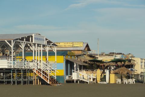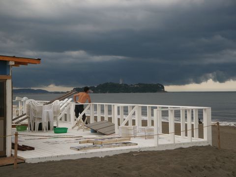 海の家はほぼ完成に近い、辻堂海水浴場の海開きは17日の土曜日、江の島の片瀬海水浴場より2週間遅れ(例年通り)。 |