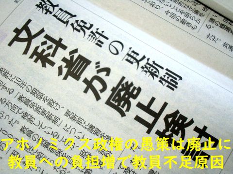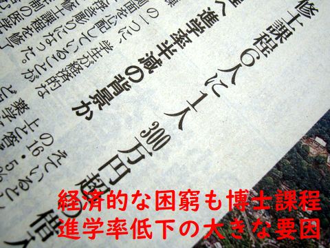 教員免許の更新制度はアベの悪質な意地悪でしかなく、建前は良いが実質的に教員の負担増だけ、更に早期退職者の増加や臨時教員の減少など副作用による教員への負担増の悪化ばかり、の大愚策。 博士課程への進学率の大幅低下も日本の科学研究の体力低下の大きな要因、科学立国なんて口先だけで何もしないどころか悪化のための策をうってきたとしか思えない。 |