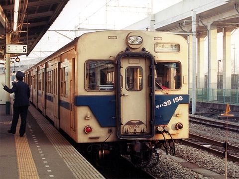 電化前は2両編成のディーゼルカーが走る超ローカル線だった。寒川駅から相模川へ向かう砂利運搬の寒川支線もあった。 |