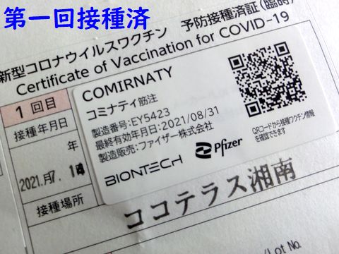 接種後待機時間の15分が終わったのは11時45分、予想よりずっと早い。バスで帰宅したのは12時10分で自宅出発から1時間30分ですべてが完了した。2日目の接種は8月4日の同じ時間、今度も早めに行こう。 |