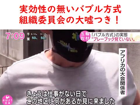 予想通りのインチキ「バブル方式」はさっそく来日した選手や役員たちに無視され、実効性はほぼ嘘ばかり、そもそもプレーブックなんて読んでもいないのだから守るはずもない。 東京都では感染急拡大なのに金権バッハは「有観客も検討を」などスガ相手に勝手な要望、「バブル違反者の情報は届いていない」とご都合主義の回答をする呆れた実態。 |
