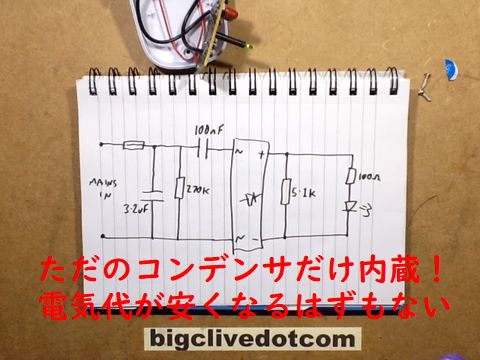 電気代が大幅に安くなるという触れ込みのこの器具、中味はコンデンサだけで効果はほぼゼロ。もっともらしく見える「ユーザの声」やそれらしい開発者の写真を掲載して騙す完全な詐欺商品。 |