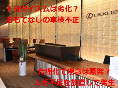 トヨタのトップブランドであるレクサスで車検の不正が露呈、仕事が増えているのに人員を手当もせず日程は守れとした経営トップの責任が一番重い。顧客無視で利益重視の劣化が露呈してきた。 |