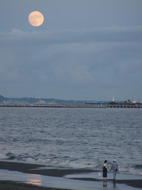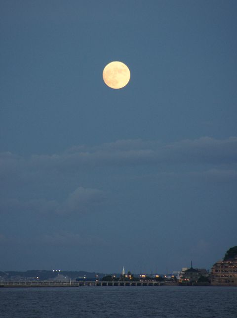 「金に汚い」嫌われ五輪とは無縁の綺麗な月が江ノ島の左に。 |