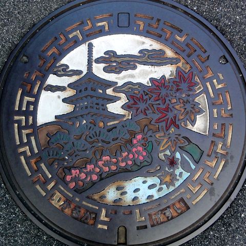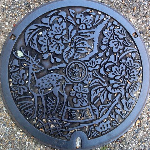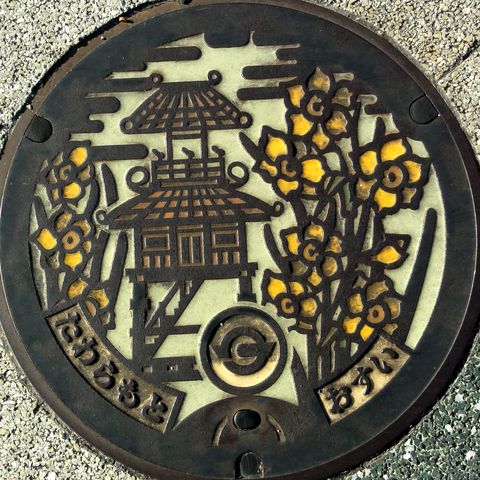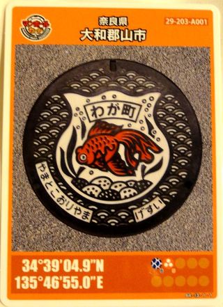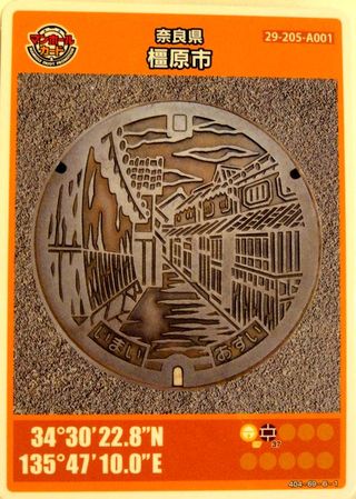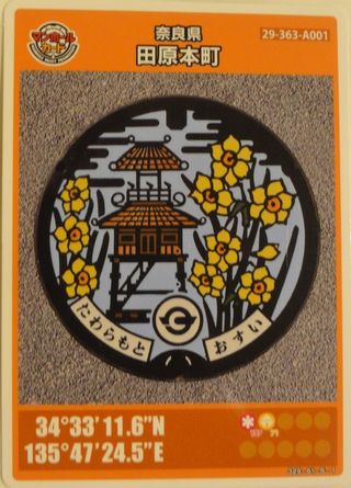 近鉄郡山から南下し八木西口駅(この駅は八木駅構内扱い)から徒歩で華甍へ、入場は4時半までだったが悠々間に合った。絵柄のマンホール蓋を探すのは諦め、次の田原本へ。 |