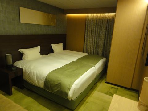 日曜夜の部屋種別を指定しない条件で格安、通常は8−9000円クラスのよう。通された部屋はツインだった、朝食も1500円と立派なもの(もちろん食べず)。 |
