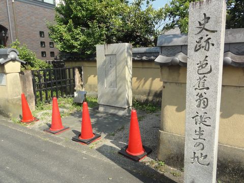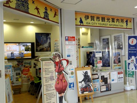 駅横のビル内にある観光案内所で配布、カラー版の設置場所を尋ねると芭蕉の生誕地の前にあるとのことで7−8分歩いて撮影にいった。 |