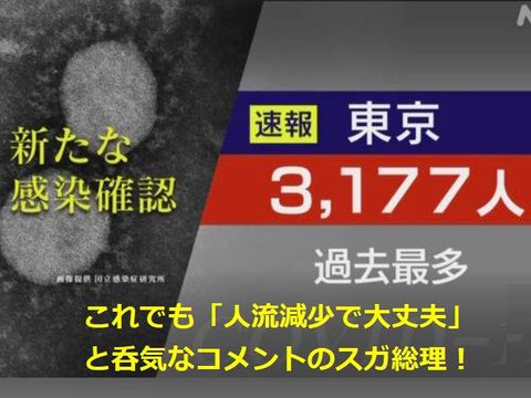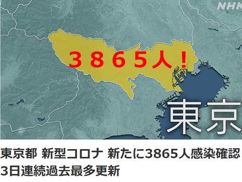 あっという間に4000人に迫る、でもスガは呑気で「人流は減少」だと。東京都の宣言期間延長や首都圏3府県と沖縄への宣言発令も濃厚。 |