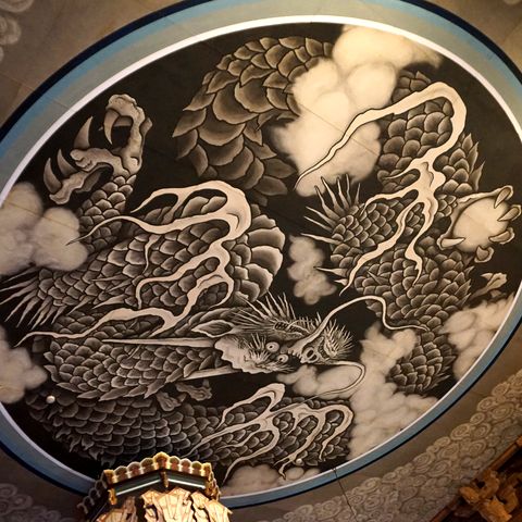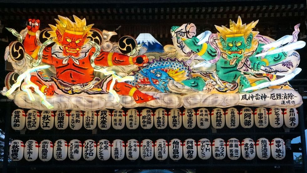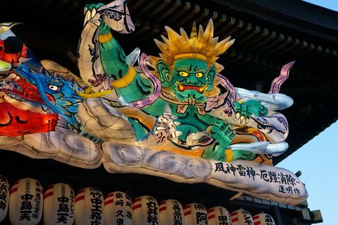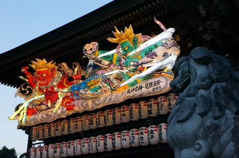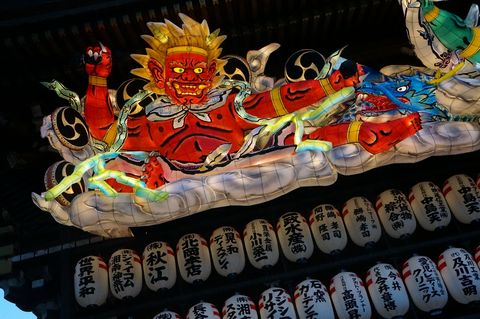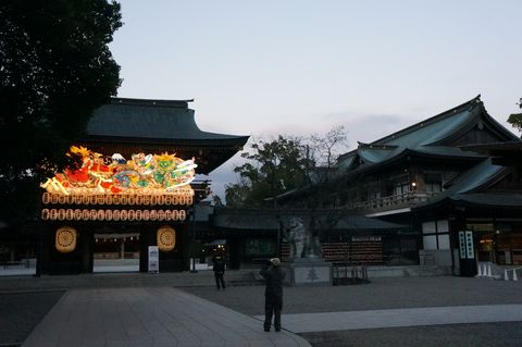 ![]() 座間駅から相模線の入谷駅へ戻り、相模線で宮山へ。4時15分には寒川神社に到着、すでにねぶたは点灯済み。まだ早いのか人は殆どいないので人が入らない撮影も可能。 |