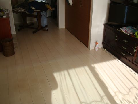 絨毯(シルク)をはがして清掃後ベランダに干して埃落とし。床は水拭き後にワックスをかけた。 |