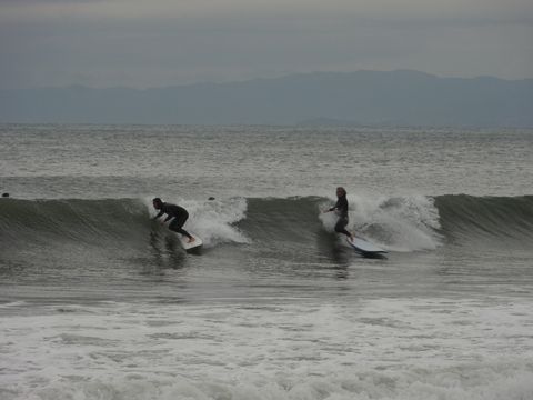強力な前線通過で午前中は雨模様、午後からも波が高く白波が立つ、サーファーは少なし。 |