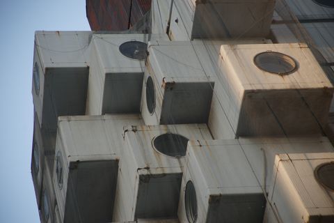 ![]() 中銀カプセルタワー 新橋駅で下車、旧新橋停車場を通り過ぎて高速脇にある変わった形状のビル、劣化で近々取り壊しになるそうで見に来ている人多数。 高速道路の直ぐ脇で写真は取りにくい場所。 |
