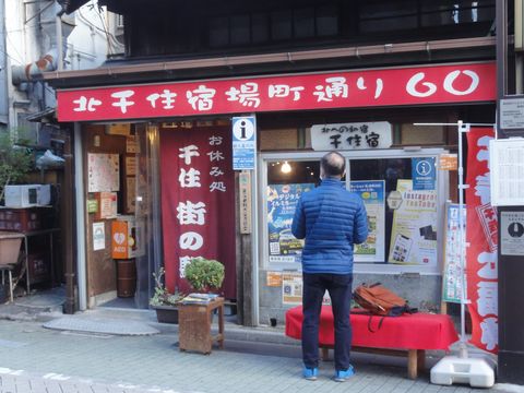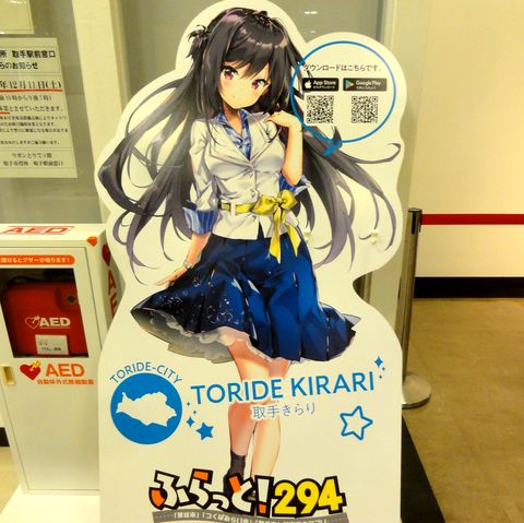 駅東口の交番前にあったマンホールはカードとは違う絵柄のものだった。配布している場所は元・魚屋さんの店で店内には氷の冷蔵庫などが残っていた。 |