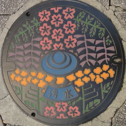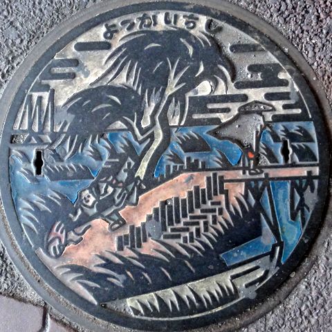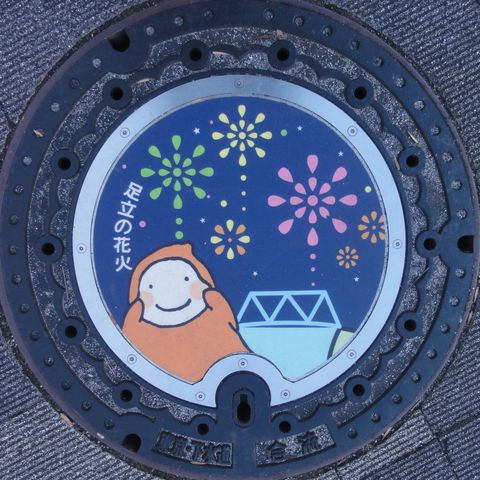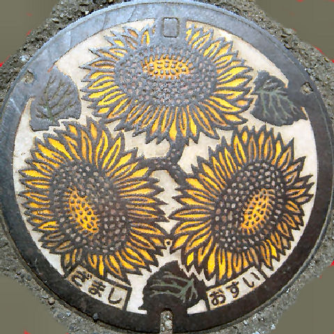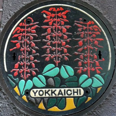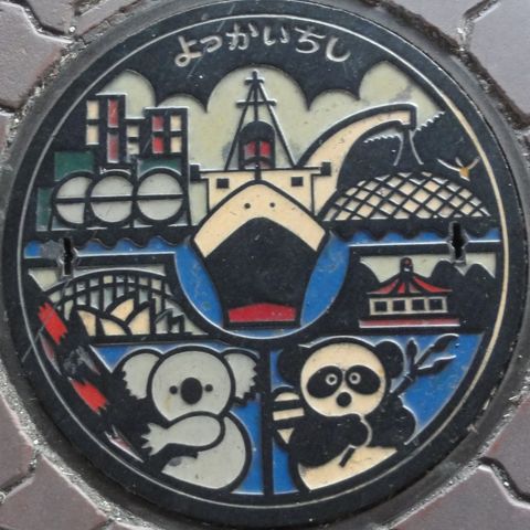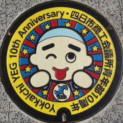 これは記念で作ったマンホール、カードとは関係ないが四日市の名物「入道くん」の絵柄。 |