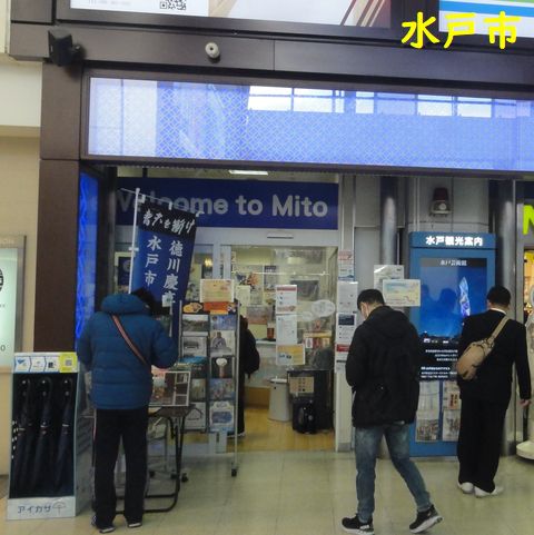 まず一箇所目は水戸市、水戸駅改札脇の観光案内所で入手、実際のマンホールは駅前から歩道を渡った先にあった。 |