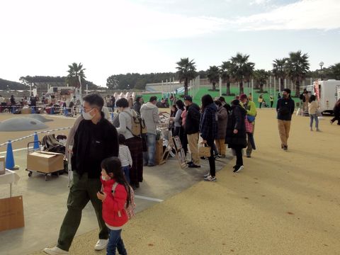 コロナ禍で中止されていたイベント「辻堂ローカルマーケット」が開催され行ってきた。入場者の把握が必要なためプール内に広場で事前登録制(当日の受付も可)。地元のパン屋さん、無農薬野菜・果実、フードトラックなどが出店。芝生広場ではクリスマス運動会。 |