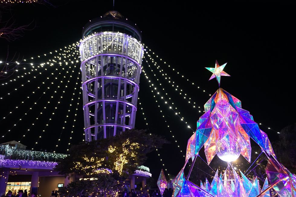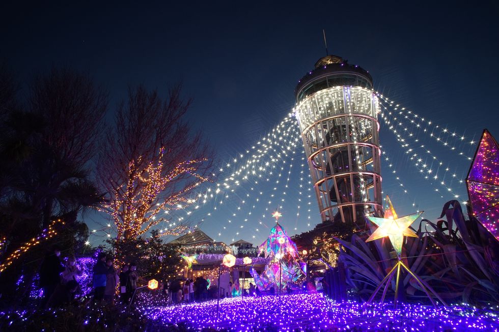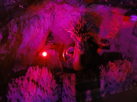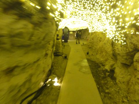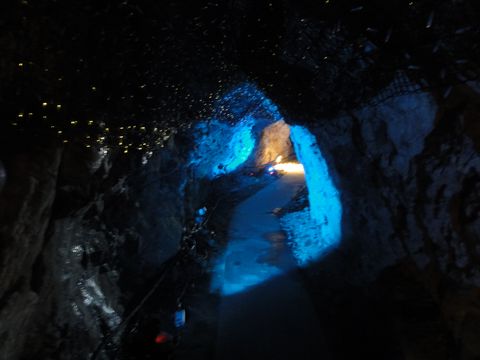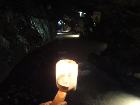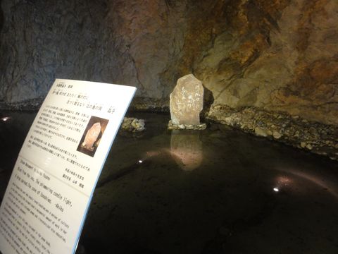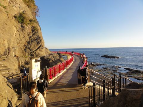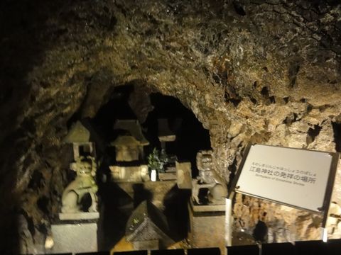 第一岩屋は普通の照明だが無料でろうそくを貸してくれた。奥には古い江の島神社の遺構があり、天井の低いところもあって頭を気にしながらの歩き。第2岩屋はイルミネーションあり。 |