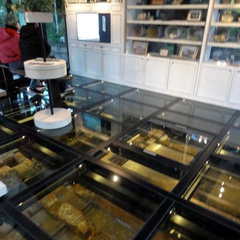 床下の遺構はガラス越しに真上から見ることができるようになった。 |