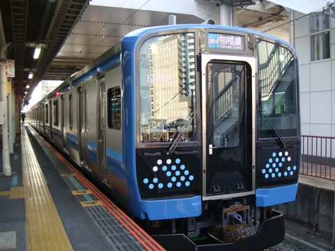 ![]() 来年3月のダイヤ改正で全数入れ替え、これに伴い朝夕の八王子への直通運転は廃止、茅ケ崎<>橋本間はワンマン運転となるよう。 |