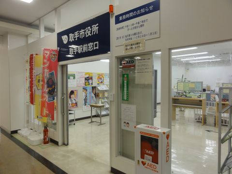 駅前のビル?の1階にある駅前案内所、閑散としてはいたが。 |