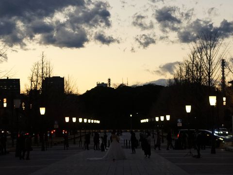 ![]() 最後に東京駅を撮影、仲通りや駅前でウェディングドレスでの撮影をしている人たちが数組以上いた、寒い中で肌を出しての撮影はきつそう。中には両親と並んでの記念撮影をしている人たちも。 |