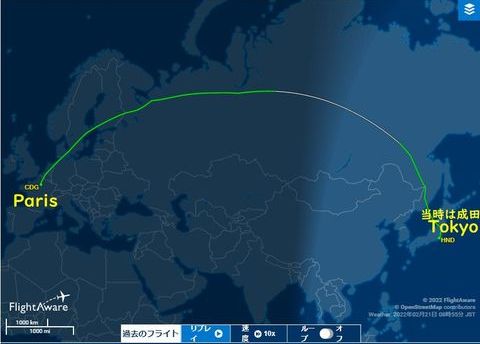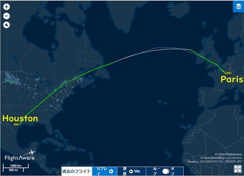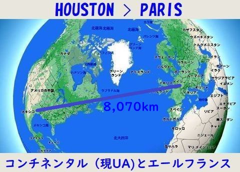 世界一周の記録?誰かのブログに世界一周の記事があったので過去の出張をチェックすると発見、2回。ヒューストンで打合せ後、パリへ移動して打合せ、その後帰国という行程だった。大西洋を越えるという便にはこれしか乗っていない。 |