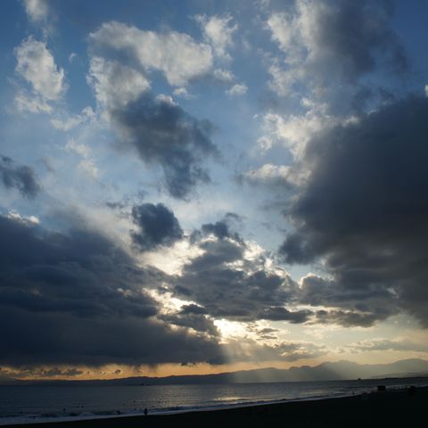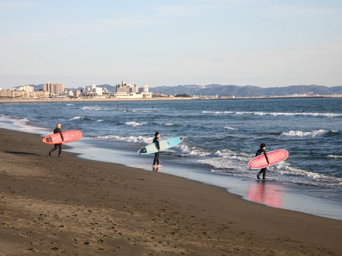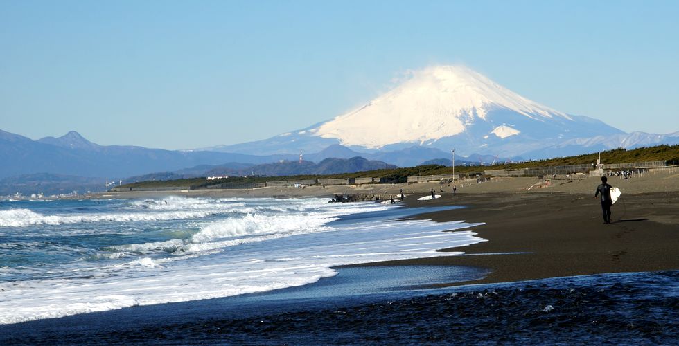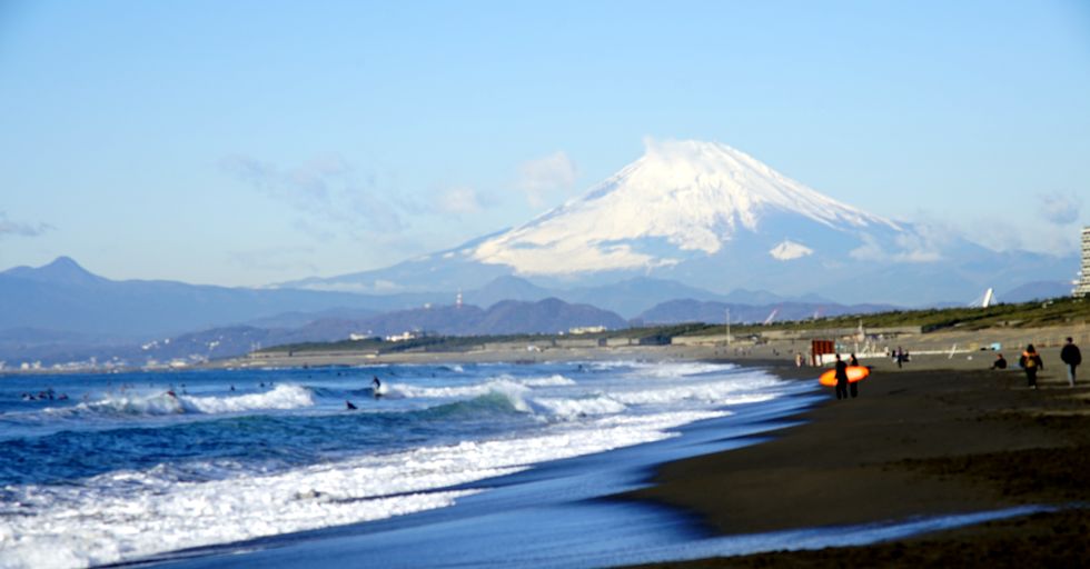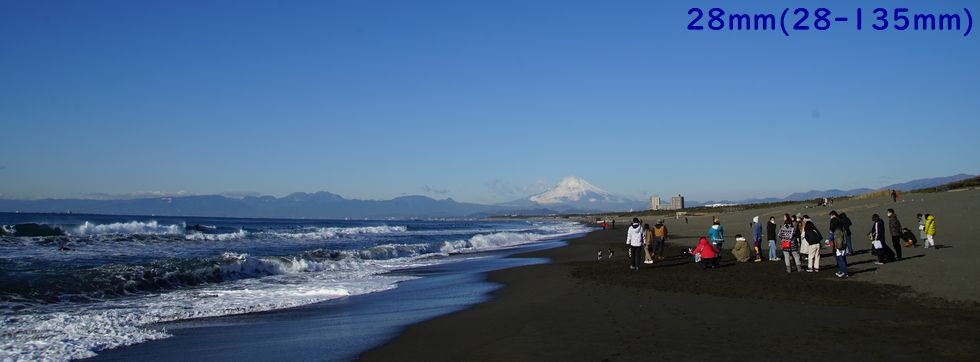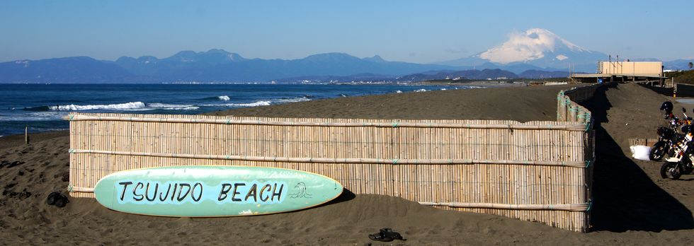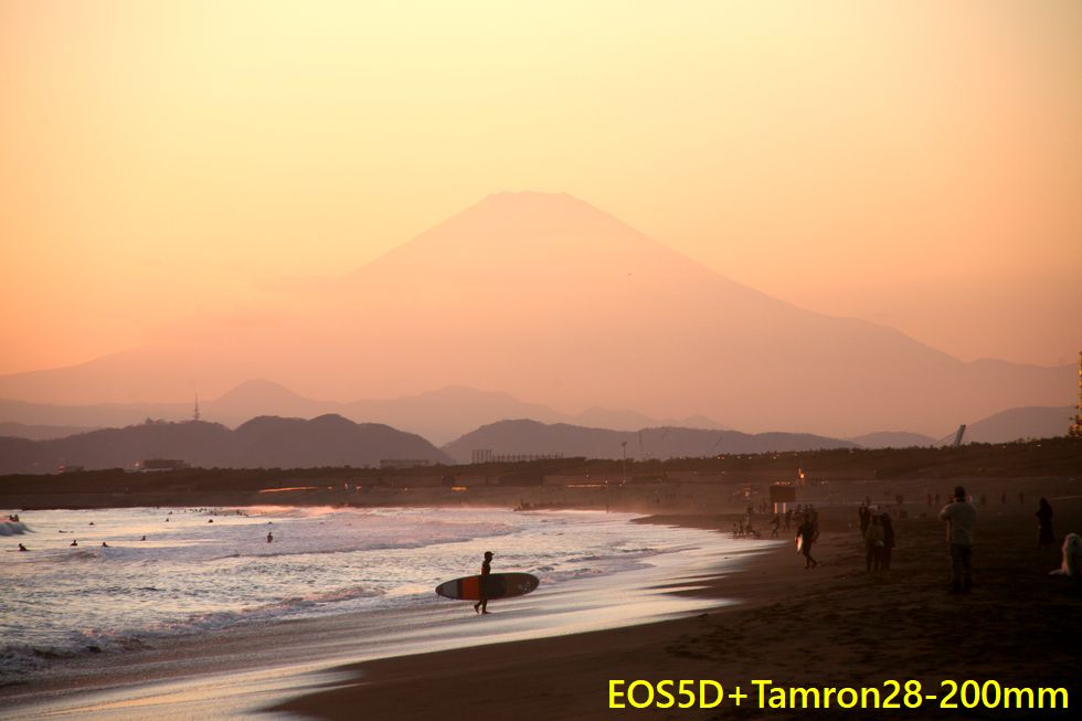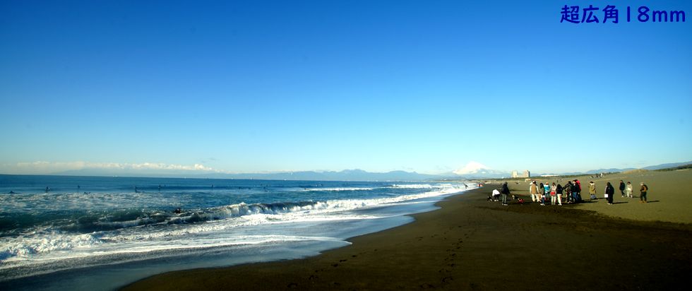 波があるので早朝からサーファー多数、日当たりが良いせいか富士山はまもなく雲に覆われて見えなくなった。 |