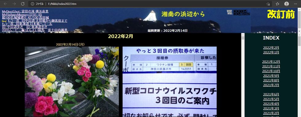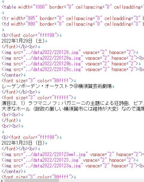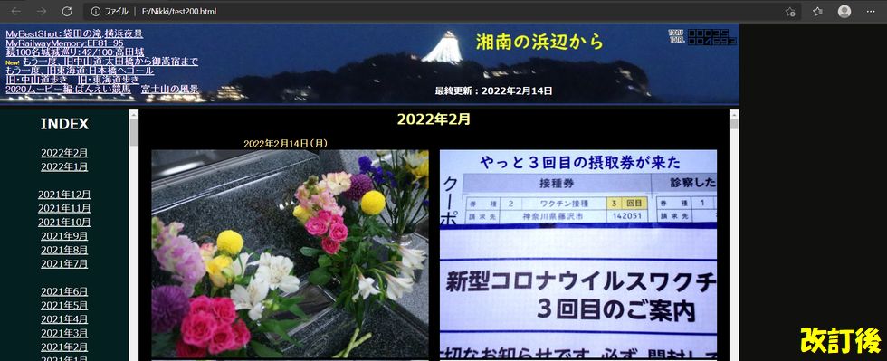 古い?HTML言語で記述した日記コンテンツひとつ毎に書式を記述してゆくので同じ記述が繰り返し何度も出てきて冗長だが、一方でどんな表示になるかは直ぐわかるというメリットもある。 |