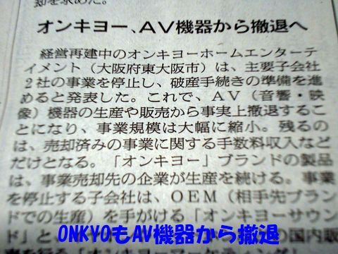 オンキョーもAV機器事業から撤退もう国内メーカは数えるほどに減少し「過去の産業」となってしまったオーディオ・ビデオ機器業界。 ブランドだけは残るが寂しい状況に。 |