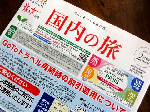 2年ぶり?にクラブツーリズムの旅行案内誌が届いた、ずっと紙きれみたいな案内しかこなかったが。