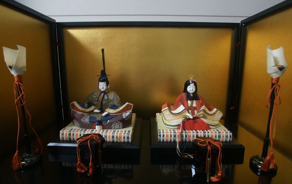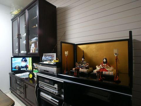 もう一つのお雛様玄関先にはもう一組のお雛様が。この時期はお雛様に追いやられて展示場所を追われるもの多数。 |