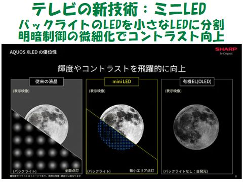 液晶テレビの新技術見慣れない用語がを調べてみた。上記は既存液晶パネルの改善を狙う新技術、まだコストが高いので普及は先?要はバックライトの細分化でコントラスト向上、と光源から3原色をより効率よく得る方法の新技術。他には微細なLEDを敷き詰めるマイクロLED技術(バックライト不要)もあるが現状製造方法では高価すぎ。バックライト不要の有機ELパネルは明るさ不足と寿命の課題は残ったまま。 |