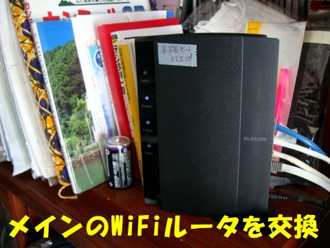 もう一台のWiFiルータを試す居間にELECOMのWiFiルータを設置、ノートPCにて接続速度などを確認、これが意外に高速で更に「IPV6」で接続できることを確認。 |