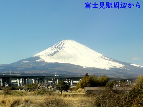 昨日の富士山神奈川県側から見ているとまだ雪はほぼ残っているが、静岡県で南側から見るともう雪が解けて縦の黒い筋が目立つようになってきた。上は南から富士川鉄橋、下は東から富士見駅あたりからの眺め。 |