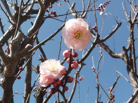 賑やかな中国人観光客もまだ三部咲き程度だが満開に近い木もちらほらとある、足元の菜の花は満開で黄色とピンク色の桜の共演。 何故かピーチクと賑やかな中国人観光客(在留中国人?)もあちこちでスマホで撮影していた。 |