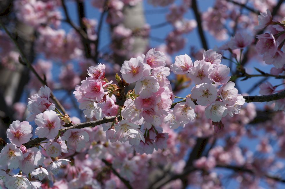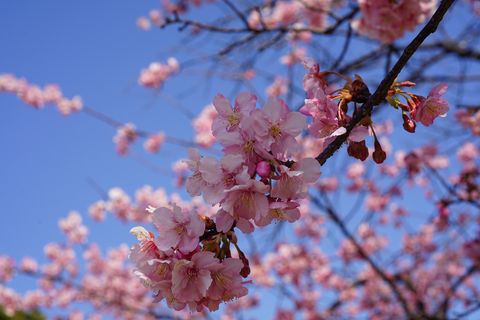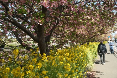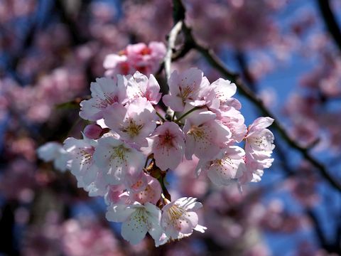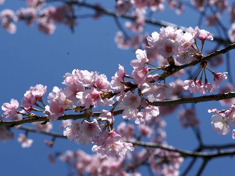 江の島の河津桜が満開江の島の河津桜が満開との情報で午前中に出掛けた。期待していた蜜を吸いに来るメジロ、2羽がやってきたが枝で蜜を吸っていた台湾リスに驚いて逃げていったのは残念。 途中の公園にある桜1本も綺麗に咲いていた、春の日差しの下では暑くて着ていたものを1枚脱ぐことに。 |