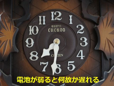 時計、2題自室の時計、メインは放送機器だった自動校正機能付きデジタル時計、毎日午前8時(だったか)NHK−FMを受信して時報で自動的に校正する。 そのためケーブルテレビの同軸を分岐させて背面に繋ぎこんである、よって修正操作は不要。 下はクォーツ式鳩時計、何故か乾電池(単一1本)が弱ってくると遅れだすが電池を替えると再び正しく動作し、時報と30分の鳴き声が便利で殆ど進みも遅れもしないのだが。 |