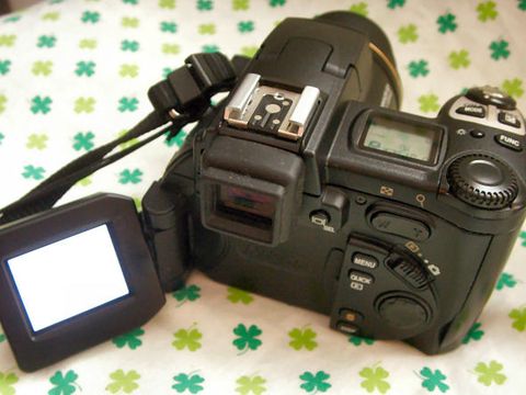 COLPIx5700(2002年購入)まだ使える?2002年に105,000円で購入した500万画素の高倍率ズーム機(35-280mm相当の8倍ズーム)、アクセサリや予備電池なども買ったので随分高価なカメラだった。 液晶を使った電子ビューファインダは黄色一色となり使用不能、背面のモニタを使えば撮影は可能。 |