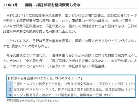 続く自動車メーカの不正、根深い?延々と続く自動車メーカの不正、少なくとも平成16年から(実際はもっと前から?)続く不正のよう。開発部門と試験部門が同一組織で日程や予算の制約から結果を胡麻化し続けていたらしい。 トヨタでも昨年は販売店の車検不正があちこちで露見、こちらはトヨタ流の効率重視?で慢性的な人手不足が不正へ走った大きな要因だったとされている。 |